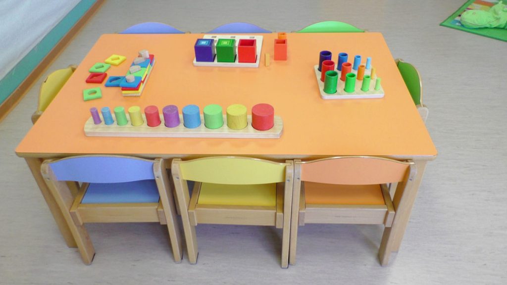 La clase de los más mayores permite, a través de los espacios de libre circulación y los proyectos llevados a cabo, favorecer la sociabilización, el desarrollo del lenguaje y la adquisición de hábitos.