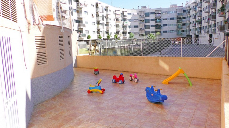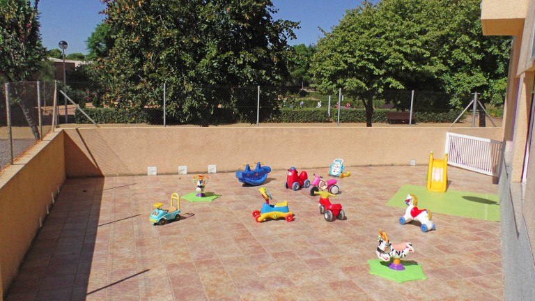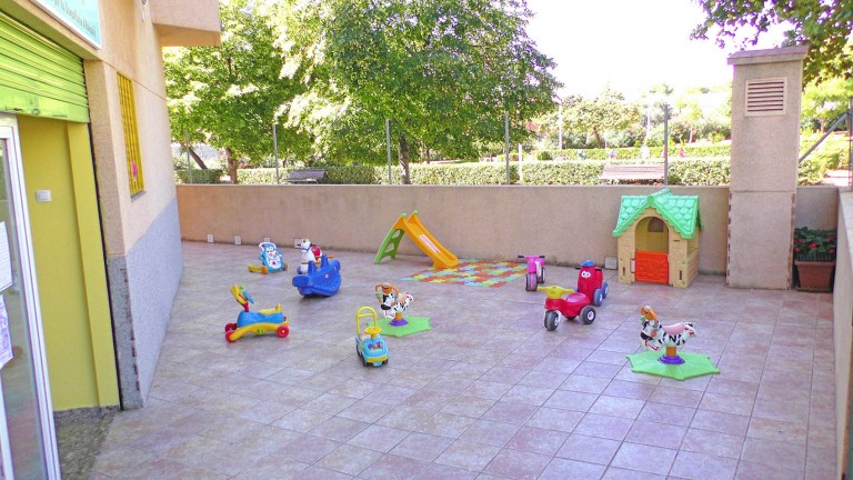 Tenemos 3 amplios patios exteriores separados por vallas para utilizar cada uno según convenga. En ellos encontramos juegos, paneles de actividades y un huerto donde plantamos y cuidamos hortalizas.